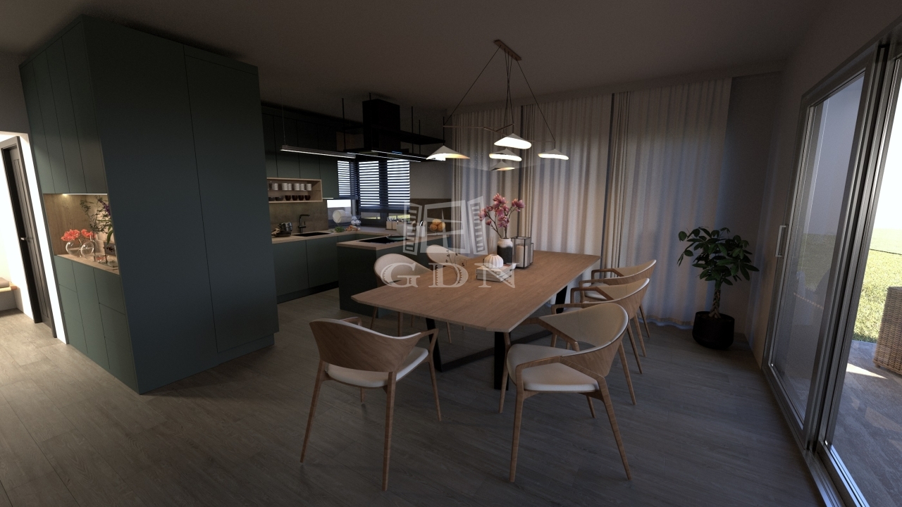 • Prémium nyílászárók: Veka Soft Line 82 mm, 3 rétegű, 7 légkamrás üvegezés, motoros redőny előkészítéssel (külső dió szín, belső fehér).