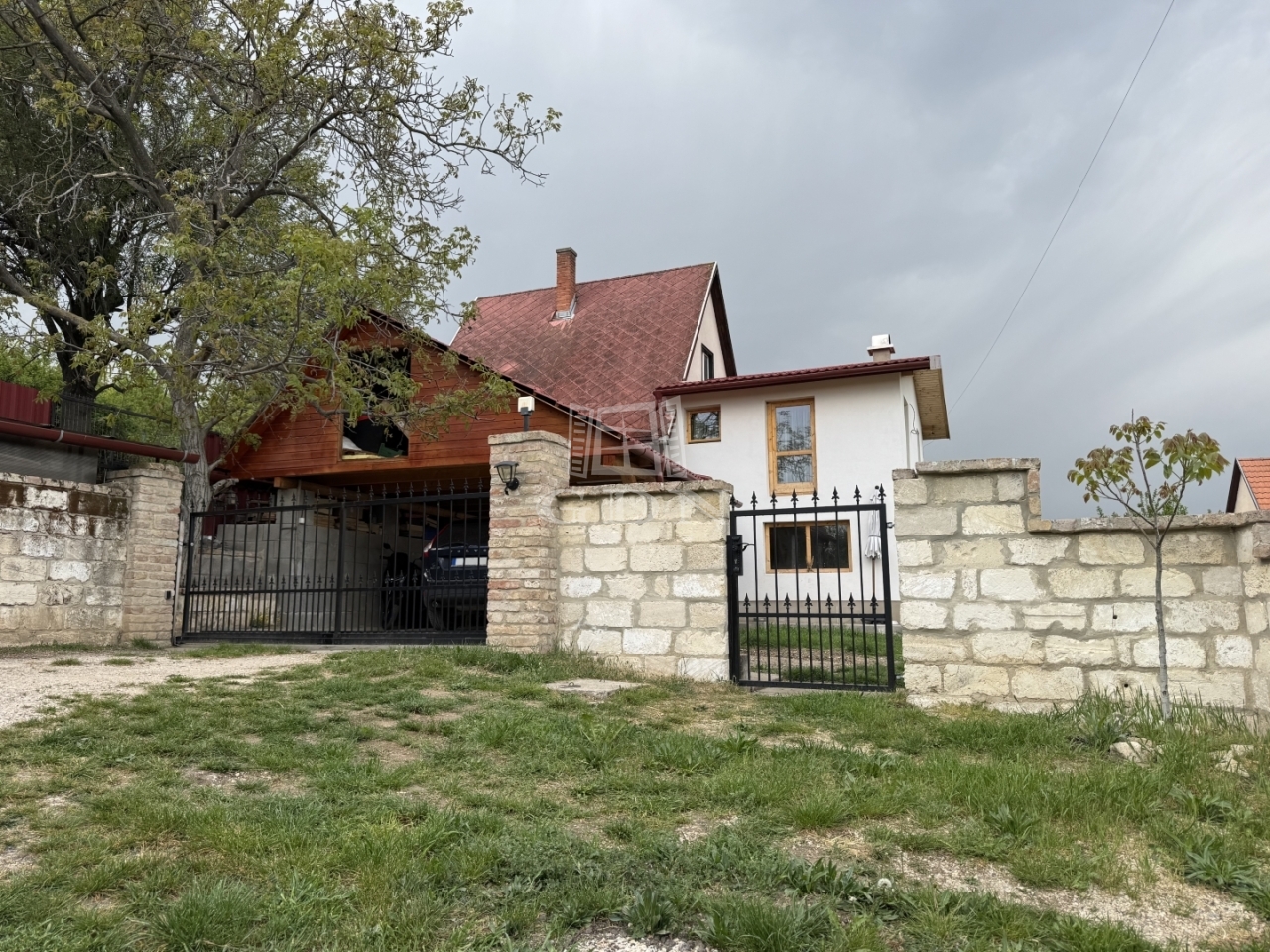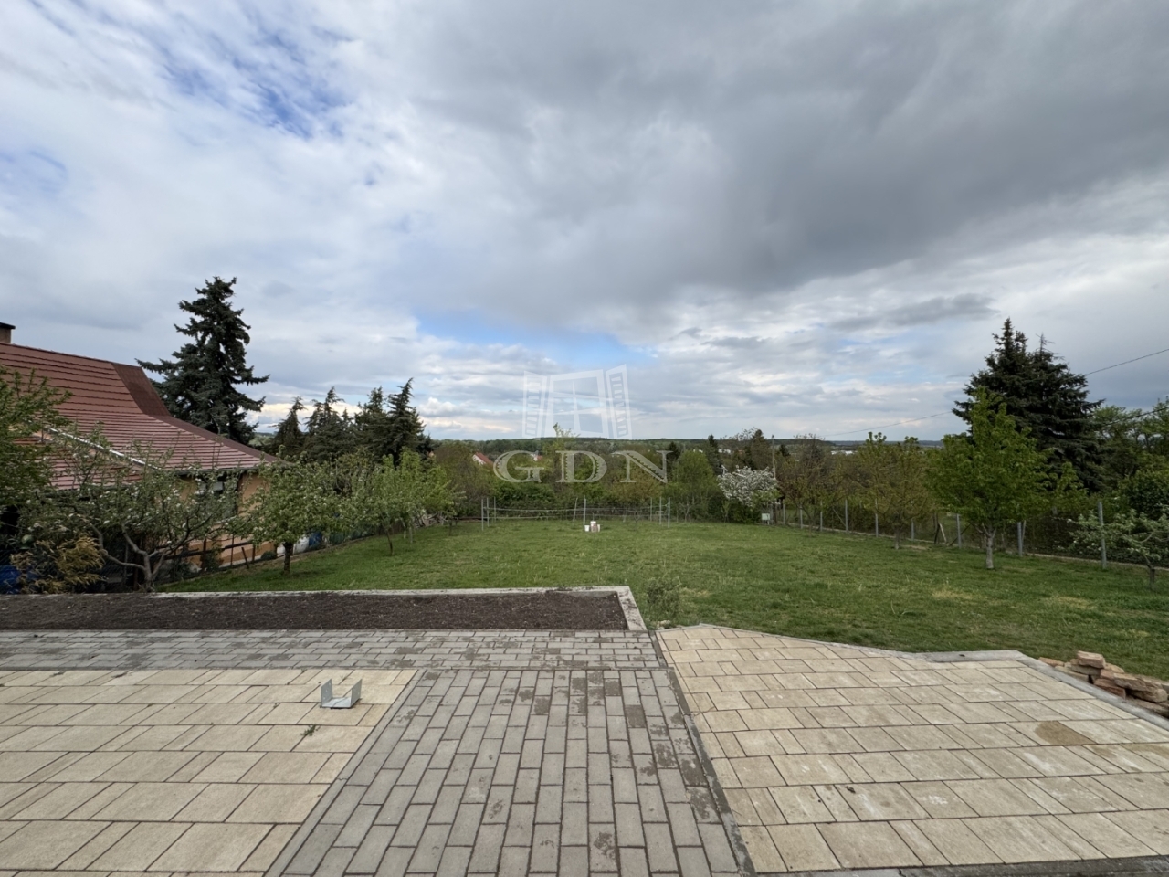 A telek 1212 m², teljesen körbekerített és füvesített. Található rajta egy fedett gépkocsibeálló, egy 20 m²-es terasz, valamint több gyümölcsfa is.