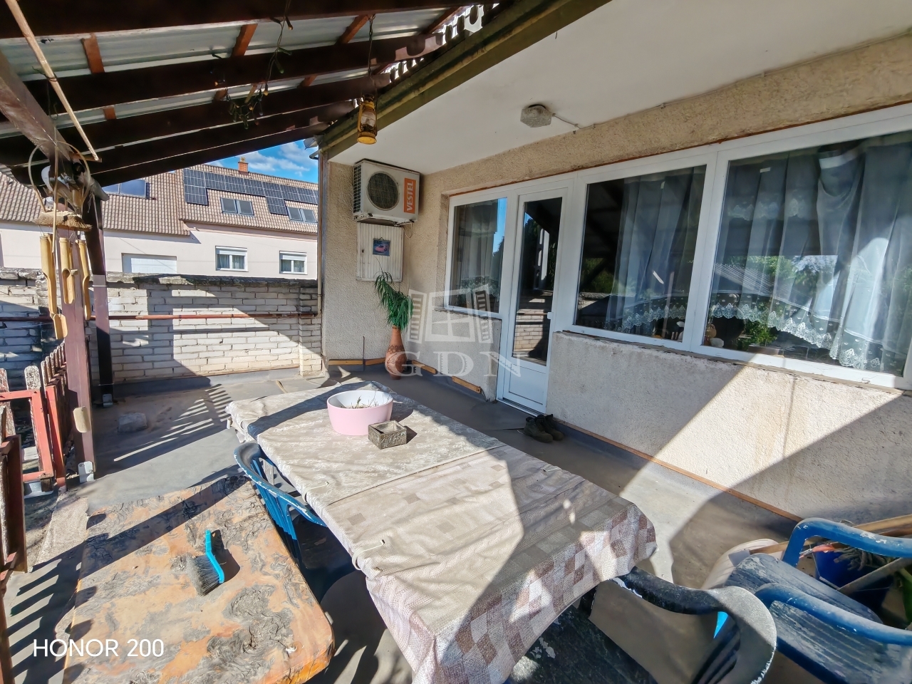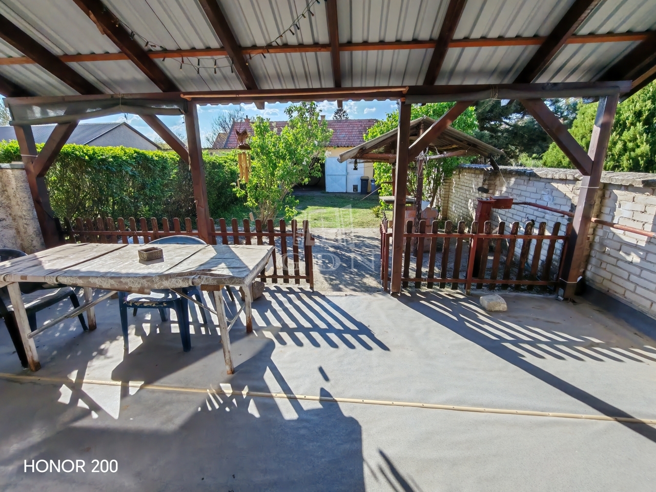 A házhoz tartozik egy 8 m²-es terasz és egy 4 m²-es erkély, amelyek kellemes kikapcsolódási lehetőséget nyújtanak. A telken egy garázs is helyet kapott.