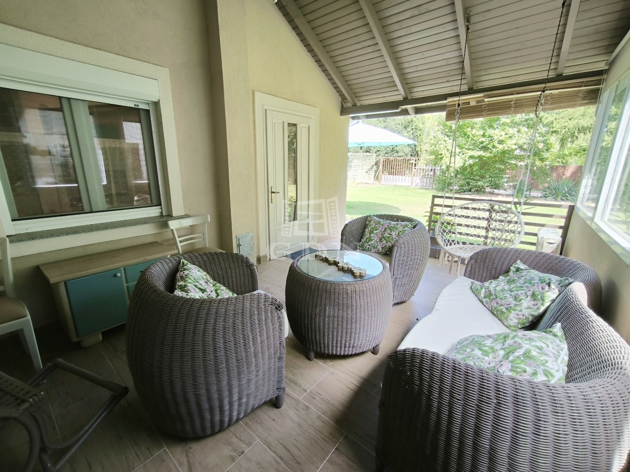 A minőségére jellemző hogy a szokásos 10 centis külső szigetelés mellett az ingatlan belülről egy 10 centis ytong falazást is kapott, ezért remek a hő és hangszigetelés, alacsony rezsivel télen nyáron lakható. A fedett terasz szél és esőmentes kikapcsolódást nyújt akár rossz időben is.