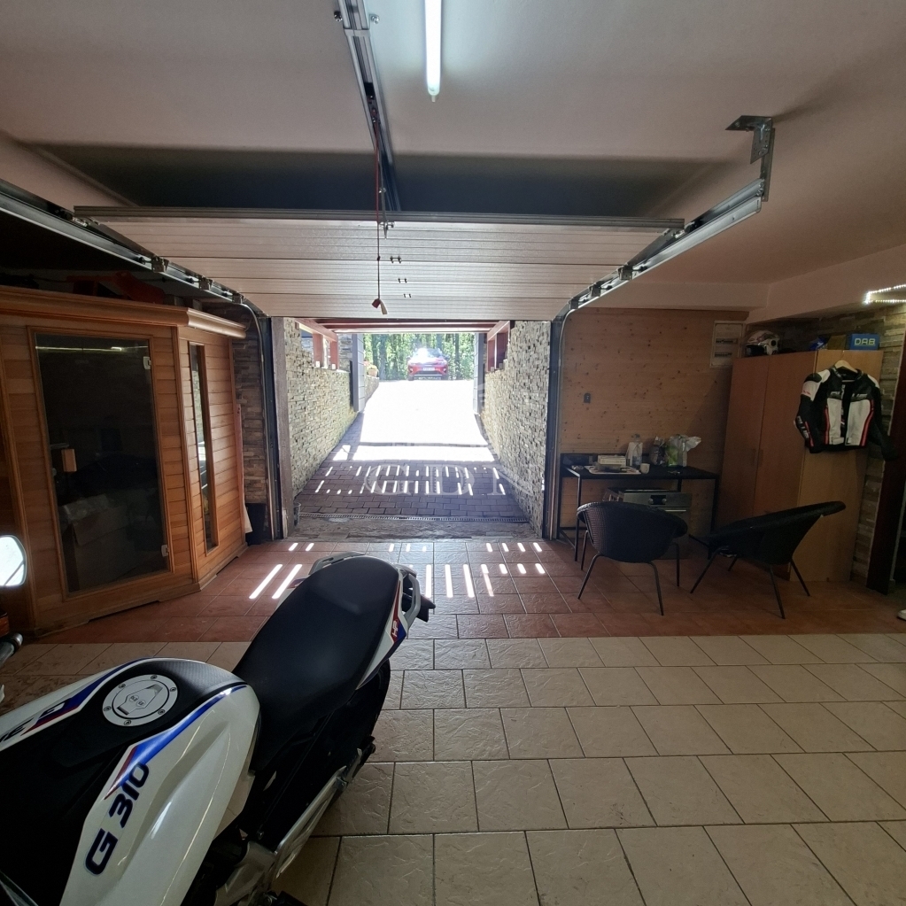 A 84 m2-es szuterén szinten került kialakításra a garázs, ahol helyett kapott egy szauna (infra és kályhával is működtethető) és gépészeti helyiség is. A régebbi tárolók, átalakítás után új funkciót kaptak, mint szoba, fürdő, edzőterem és persze maradt még hely egy nagyobb tárolónak is.